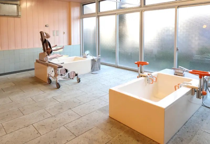ひのきのお風呂にてのご入浴、レクリエーション、老化予防のための体操、発声練習などを行なっています。